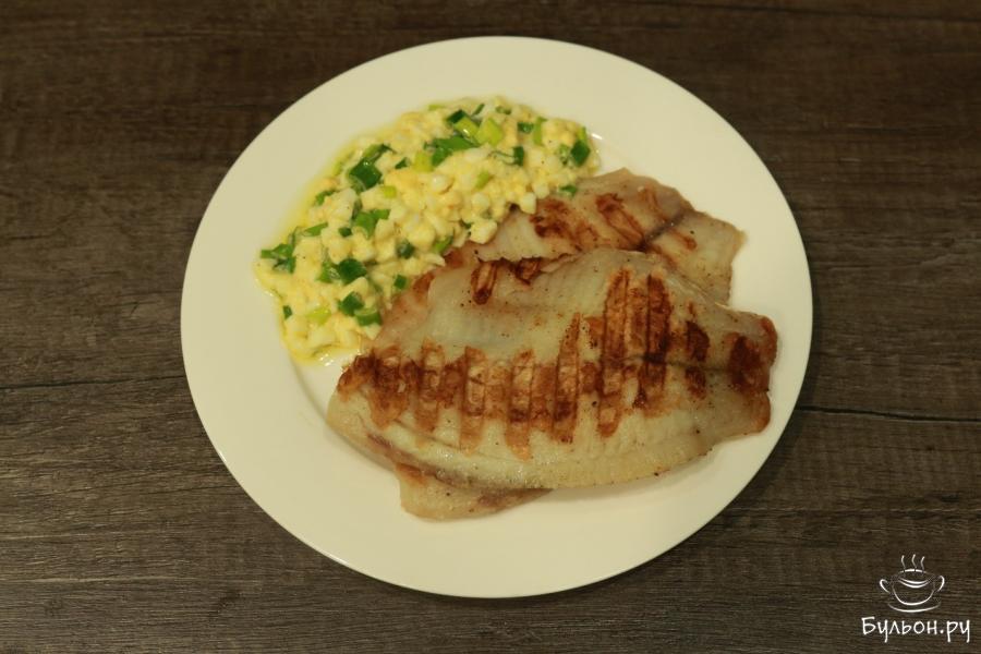 Белая рыба с подливой из сливочного масла, яиц и лука это прекрасный вариант для ужина. Не слишком тяжелый и в тоже время довольно сытный. В данном рецепте рыбу можно использовать практически любую. Хоть соус сам по себе и очень простой, но он невероятно вкусный и идеально подходит к рыбе. Специи добавлять не обязательно, но я все же советую, так как вкус блюда за счет их использования становится богаче. Только не переборщите, добавляйте немного, иначе специи будут перебивать все остальное, все-таки рыбка у нас нежная и соус тоже очень нежный и мягкий на вкус.