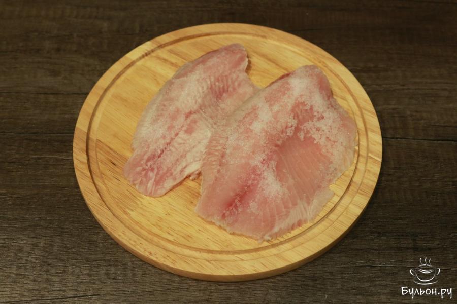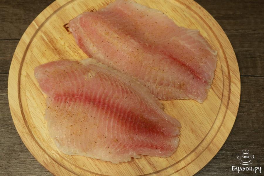 3. Филе рыбки моем и обсушиваем. Немного подсаливаем, добавляем немного специальных специй, предназначенных для мяса рыбы.