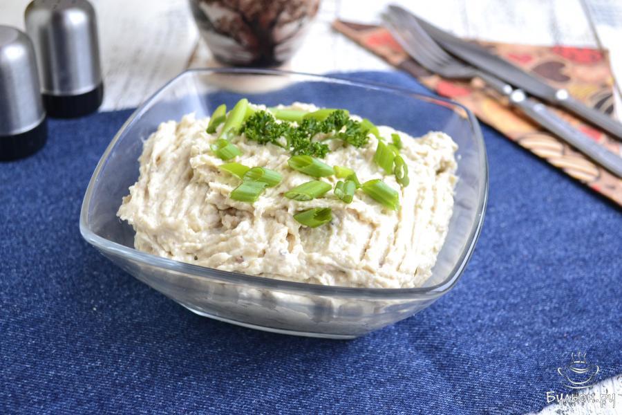 5. Все подготовленные продукты перекрутить на мясорубке или измельчить блендером до состояния паштета. Добавить сливочное масло, предварительно размягченное.