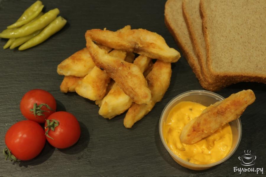 Такие палочки из рыбы в остром кляре могут служить в качестве основного блюда, к которому можно подать овощи, гарнир или и то, и другое вместе, так и в качестве закуски. Если такая рыбка идет как закуска, то к ней можно подать соус. Так как в моем рецепте использовалась уже острая панировка, то других специй я добавлять к рыбе уже не стала, просто посолила ее. В принципе панировку можно использовать любую и мелкую, и крупную. И так, и так получится вкусно. С крупной панировкой палочки получатся более хрустящими.