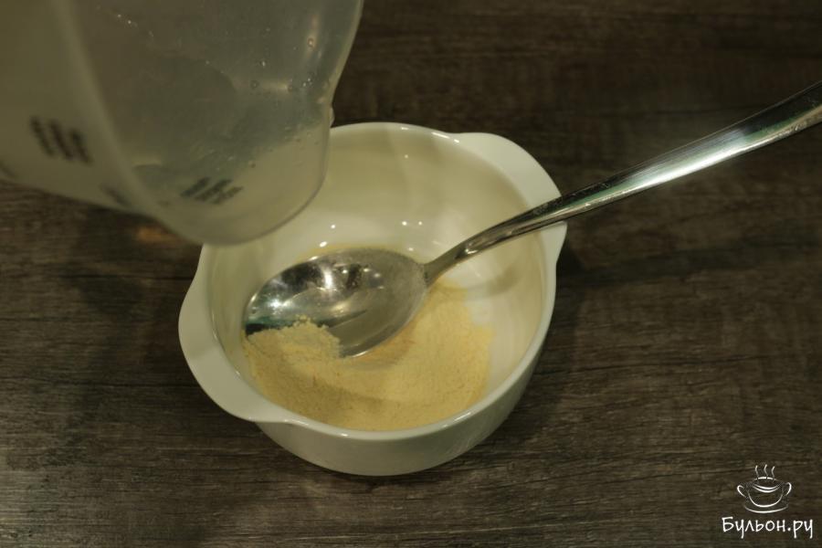 3. Берем панировку, я использую специальную острую. Теперь возьмем 2 емкости. В одну из них положим 3 столовые ложки панировки, а в другую только одну. В емкость, где меньше панировки, постепенно вливаем воду и хорошо вымешиваем панировку с водой.