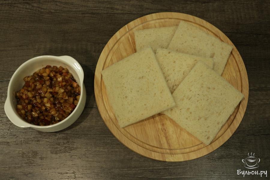1. На фотографии изображено все то, что нам потребуется для приготовления пирожков. Повторюсь, начинку вы можете приготовить свою. И еще, тостовый хлеб должен быть свежим, с ним должно быть удобно работать и это влияет на вкус самих пирожков.