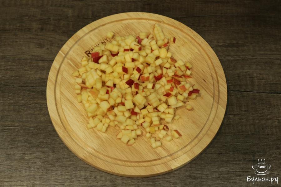 2. Яблоко берите большое, примерно, 250 г. Его как-раз хватит для наших пирожков. Итак, яблоко очищаем от семян, нарезаем мелко.