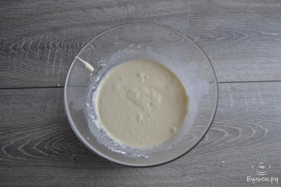 3. Перемешайте муку с жидкими ингредиентами до однородного состояния. Тесто должно быть не слишком густое.