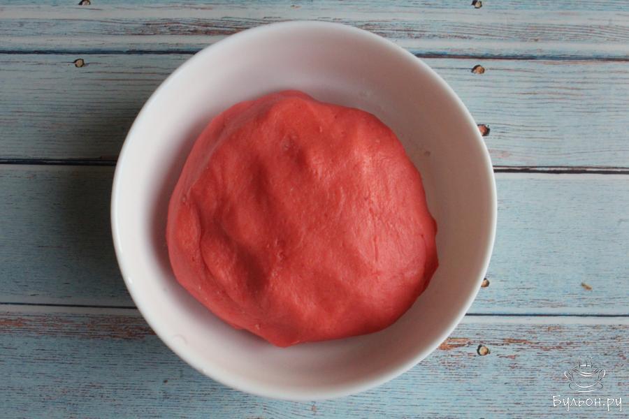 5. Добавляем в тесто муку и у нас получится мягкое тесто. Тесто не липнет к рукам и работать с ним удобно.