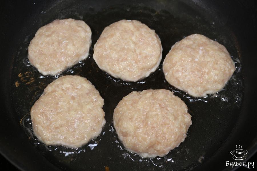5. Теперь сформируем небольшие биточки, которые будут иметь округлую форму. Сковороду с растительным маслом нагреваем, после чего выкладываем на нее биточки.