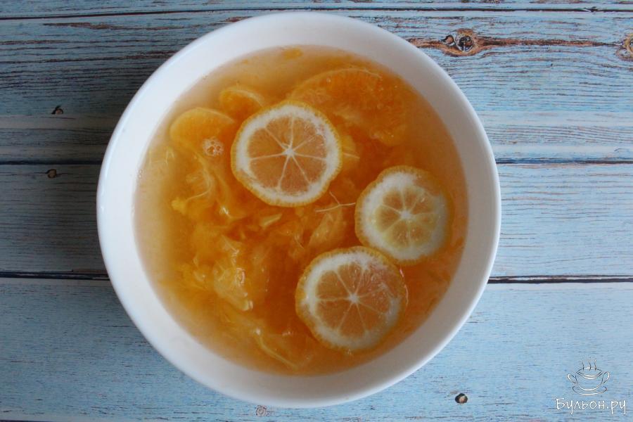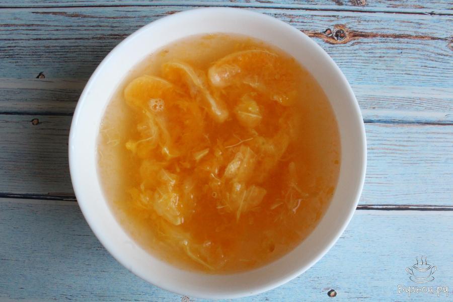 6. Перед подачей мандариновый сироп процедить и разбавить его газированной минеральной водой по вкусу. По желанию добавляем в лимонад лед.