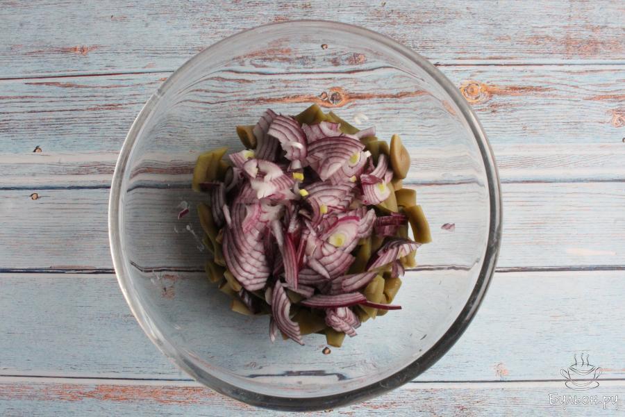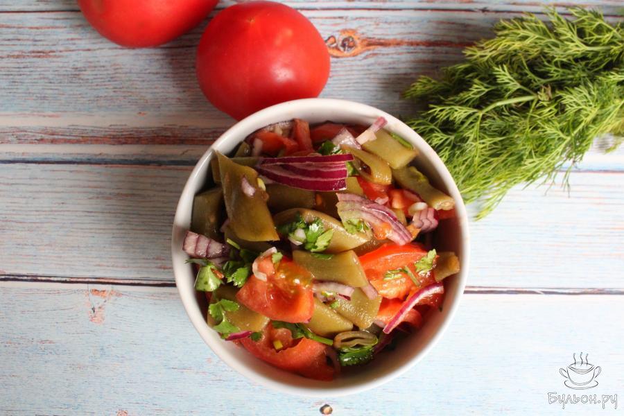 Этот салат подходит не только для повседневного стола, но и для постного и вегетарианского меню. Если вы любите зеленую фасоль, этот салат для вас. Фасоль можно использовать свежую или замороженную, но предварительно ее нужно будет отварить. Зимой удобно готовить такой салат из консервированной фасоли. Салат из консервированной стручковой фасоли и овощей можно дополнить своей любимой зеленью, сдобрить лимонным соком, если хочется сделать салат с кислинкой.