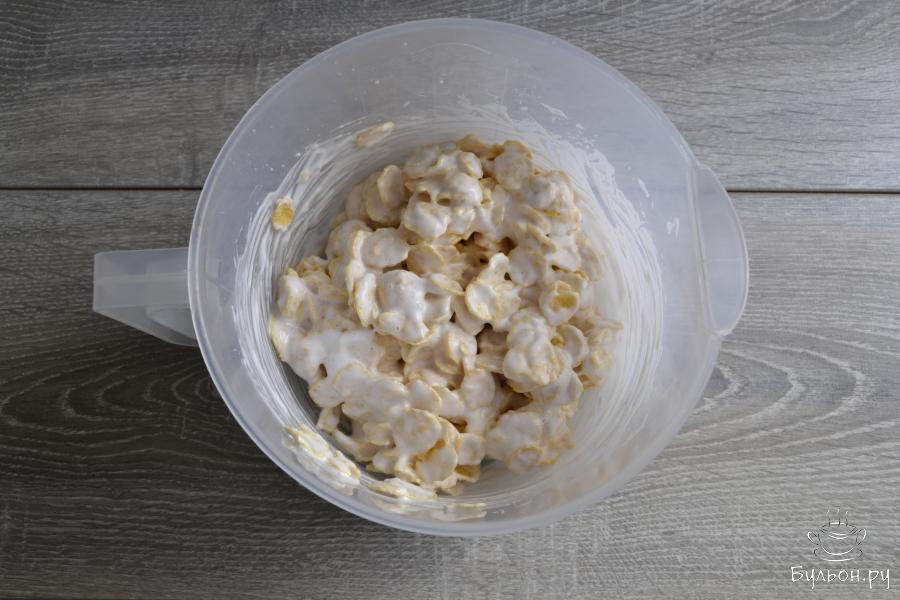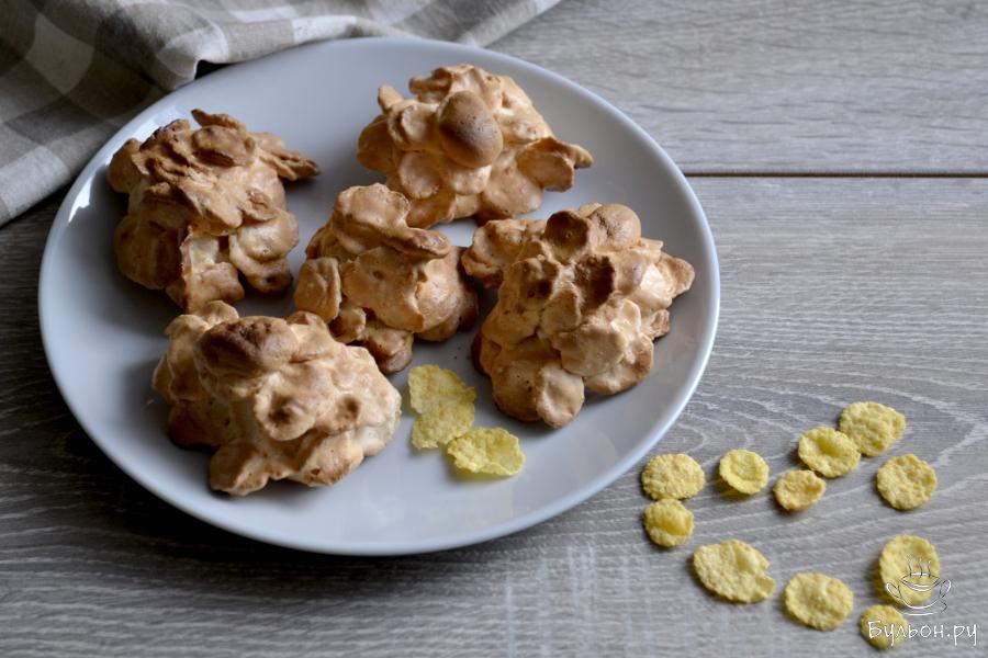 Для приготовления печенья из кукурузных хлопьев потребуется всего три ингредиента: сахар, кукурузные хлопья и яичный белок. Хлопья возьмите те, которые, обычно, едят на завтрак, заливая их молоком. В нашем рецепте хлопья без сахара, но можно взять и сладкие, если вы сладкоежка. Печенье получается мягкое, за счет взбитых с сахаром белков, и хрустящее за счет хлопьев. Попробуйте приготовить! Быстро, просто и вкусно.