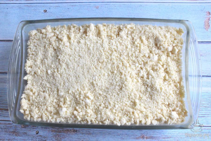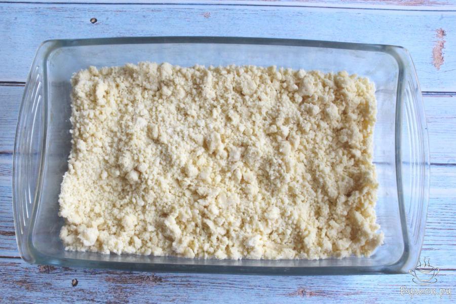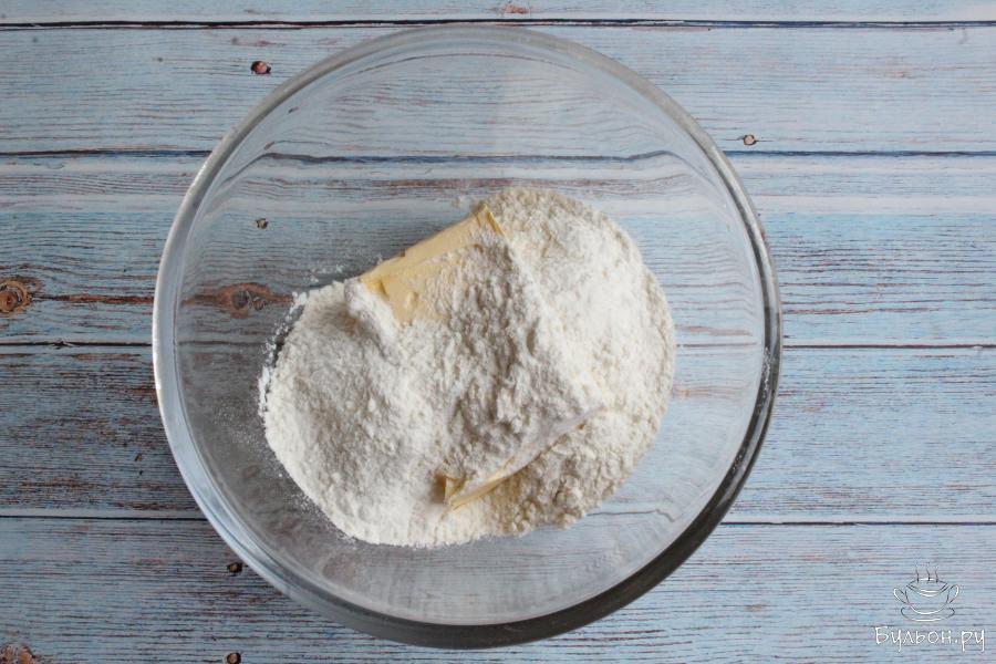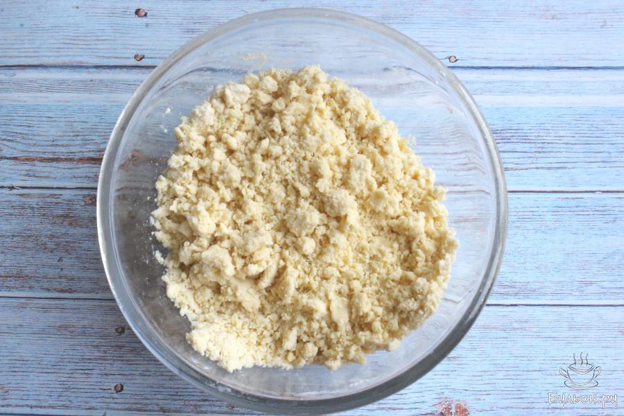 3. Руками растираем муку с маслом в крошку. Тесто в пироге получается пресное, а начинка сладкая. Если вы хотите более сладкий пирог, то можно добавить немного сахара и в тесто.