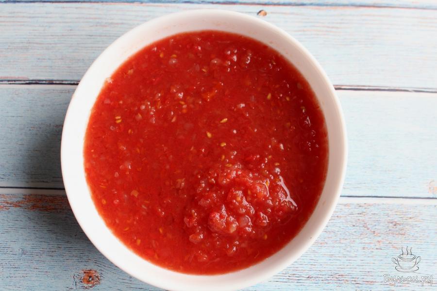6. Соус для пиццы можно взять готовый, а можно приготовить свой. Для этого три помидора промываем и перетираем через терку.