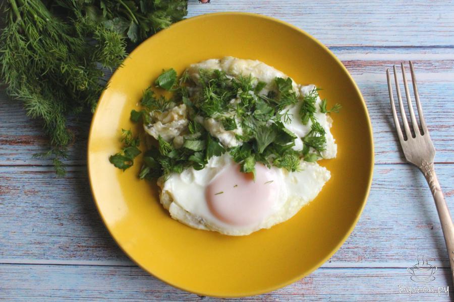 4. Я готовила как глазунью. Готовим яичницу несколько минут, смотрим готовность по желтку. Когда у желтка будет нужная вам консистенция, снимаем сковороду с огня.