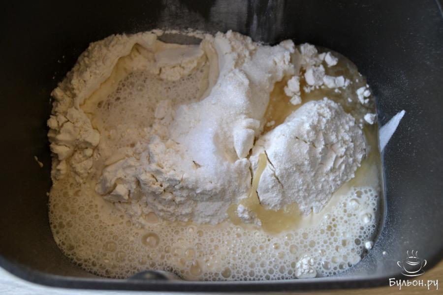 3. Влейте растительное масло и теплую кипяченую воду. Поставьте ведерко в хлебопечь и установите программу не менее 4 часов. Для хлебопечки Panasonic это 4 часа 5 минут - основной хлеб.