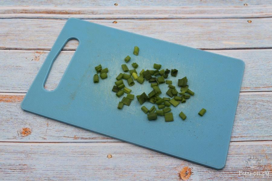 1. Возьмем несколько ломтиков варено-копченой говядины, нарежем их на кусочки средне или мелко, по своему усмотрению.