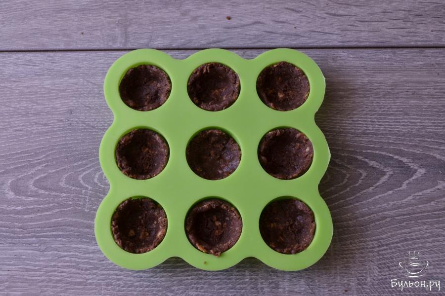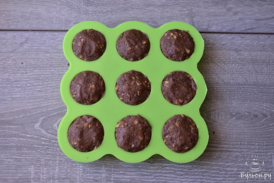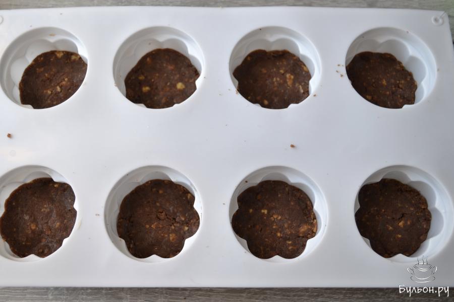 11. Используя силиконовую формочку приготовьте мини-пирожное. Для этого отщипните кусочек теста и плотно заполните им донышко и бока ячейки.