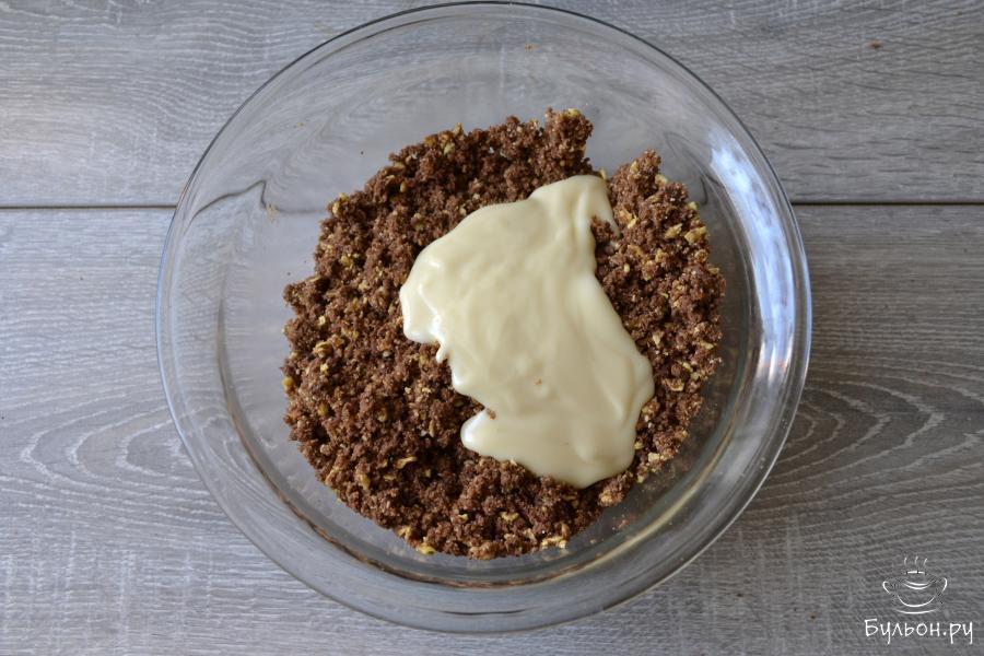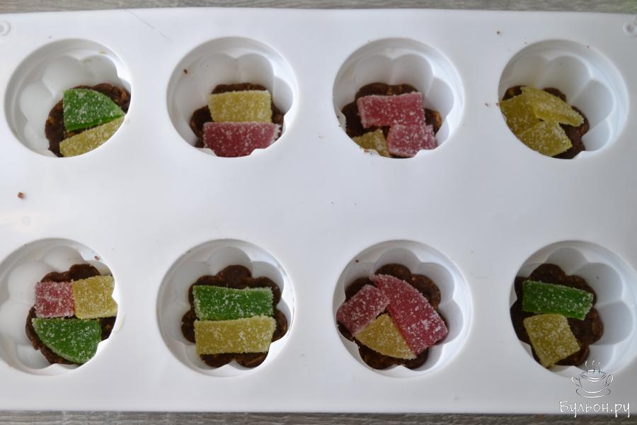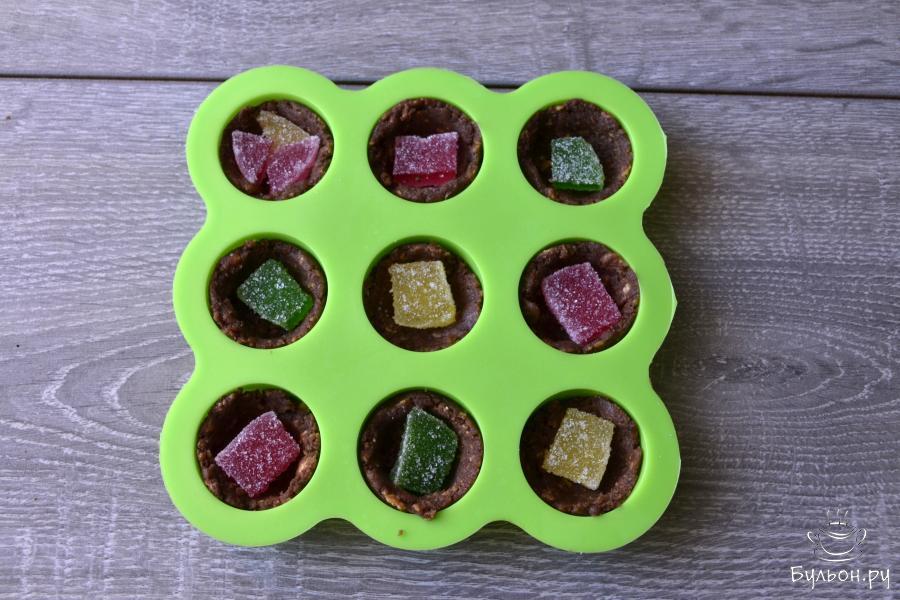 16. Сверху на мармелад положите тесто и также уплотните его. Поставьте обе формы в холодильник на пару часов или в морозильную камеру на 15-20 минут для застывания.