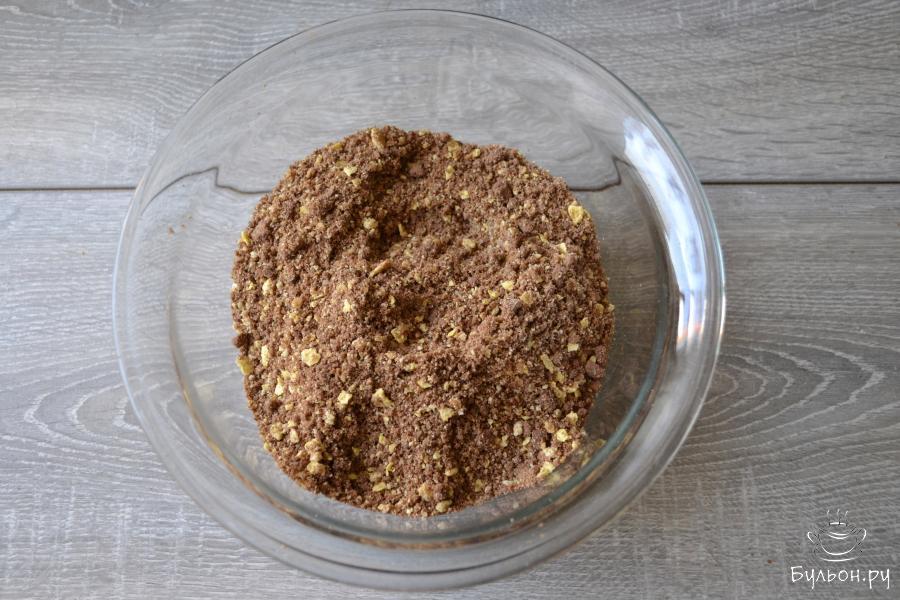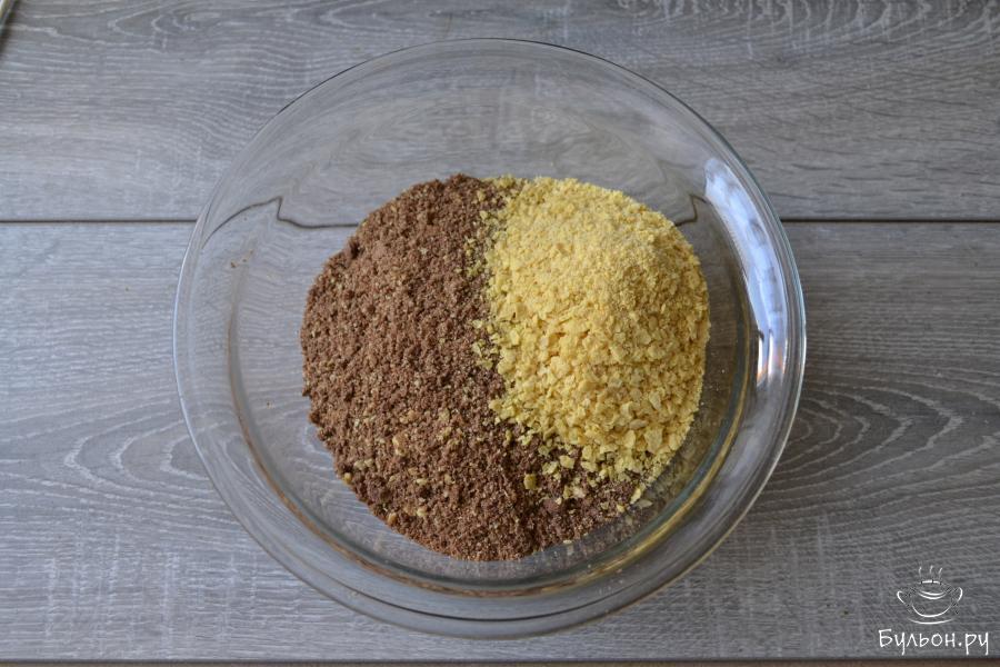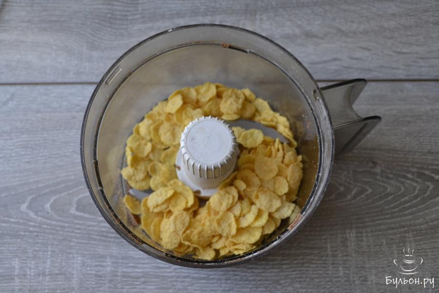 3. В чашу комбайна положите кукурузные хлопья. Пирожные будут сладкие, поэтому хлопья использую без сахара.