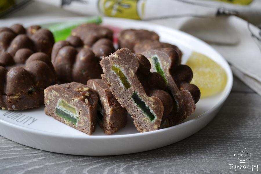 Приготовить пирожное без выпечки из печенья со сгущенным молоком и мармеладом сможет даже совсем неопытная хозяюшка. Для этого десерта требуется минимум самых доступных продуктов. Мармелад, который используются в качестве начинки, придает приятную кислинку пирожному. Печенье можно взять самое простое. Сгущенное молоко можно использовать как обычное, как и вареное. В любом случае, молоко следует добавлять понемногу, чтобы в итоге получилась пластичная масса. Простой рецепт для сладкоежек.