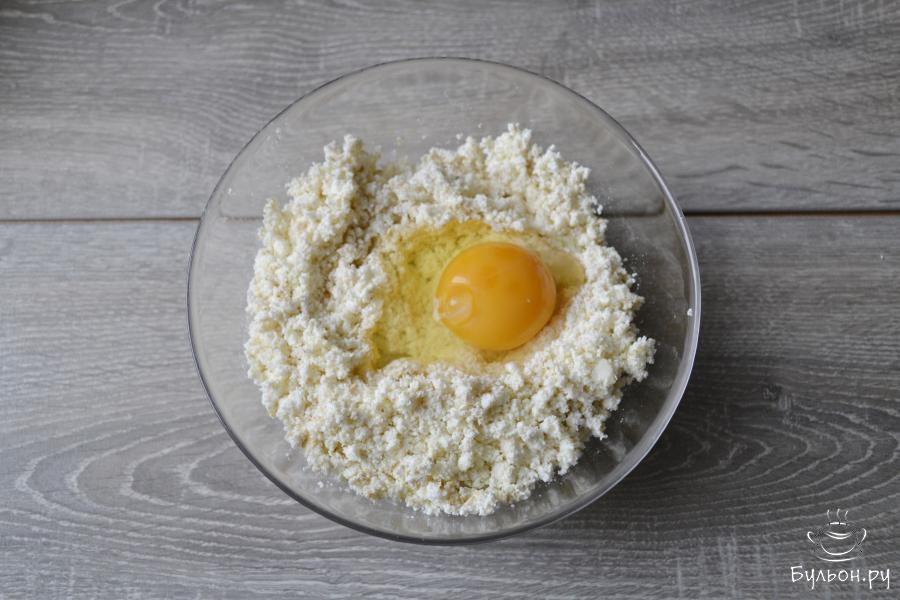 4. Тщательно перемешайте творожную массу с яйцом и оставьте на кухонном столе хотя бы на полчаса. За это время овсяные хлопья немного набухнут.