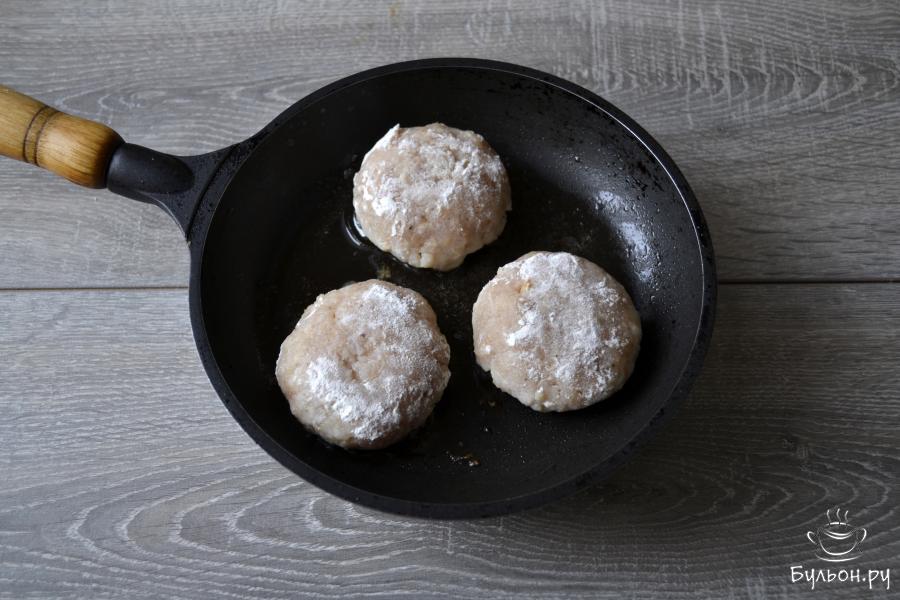 6. Когда нижняя сторона котлет поджарится, переверните и продолжайте жарить котлеты до готовности еще в течение 10 минут.