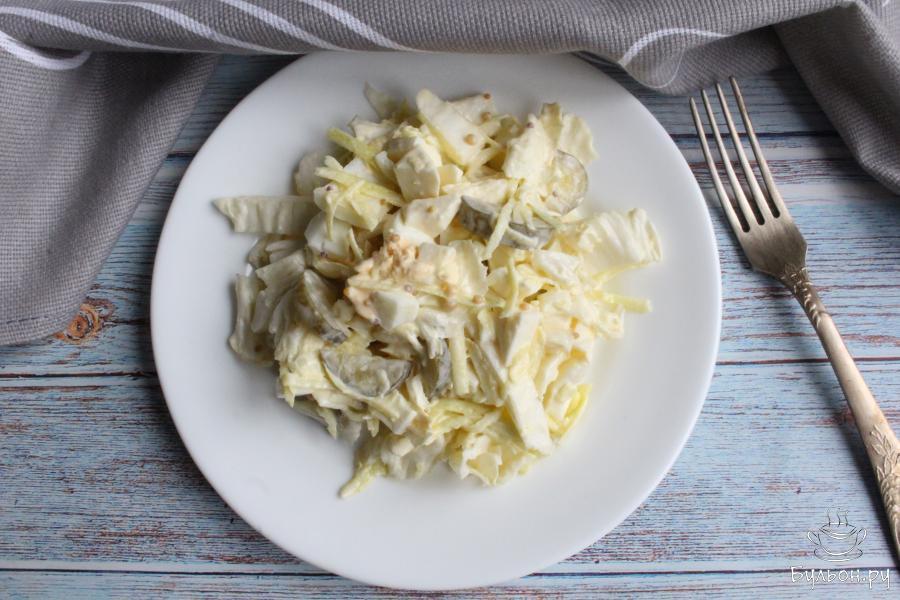 Овощной салат из капусты с вареными яйцами и брынзой можно приготовить как из молодой белокочанной капусты, так и из пекинской. Оба варианта получаются вкусные. Предлагаю приготовить салат из пекинской капусты. Салат готовится быстро и просто, его приготовление не задержит вас долго на кухне. Салат получается нежный, насыщенный, пикантный, а благодаря брынзе, еще и сытный. Если вы не употребляете майонез, то заправить такой салат можно оливковым маслом.