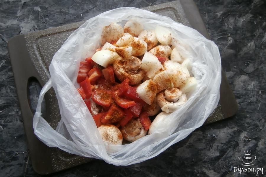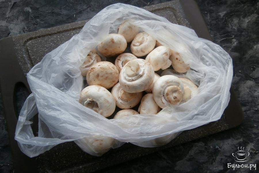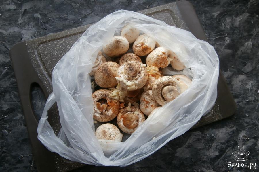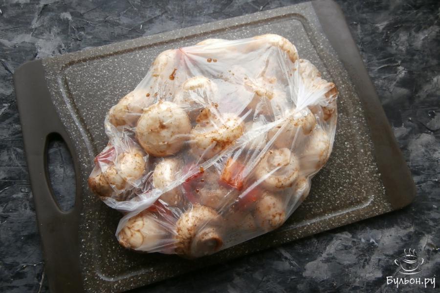 4. Пакет крепко завязать и хорошо им потрясти, чтобы все ингредиенты перемешались между собой. Оставить грибочки в прохладном месте часа на полтора.