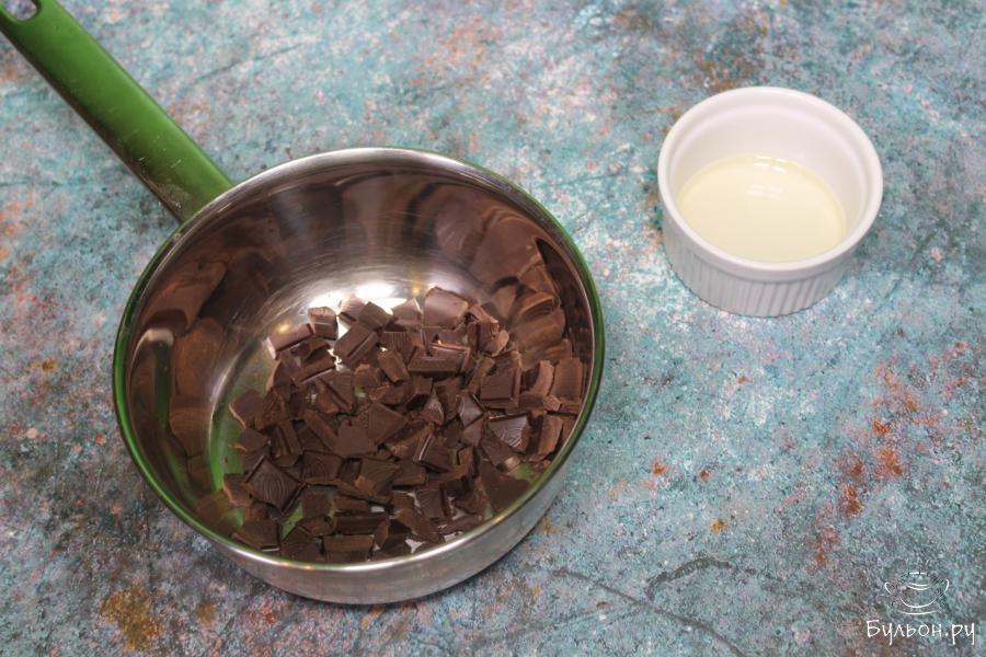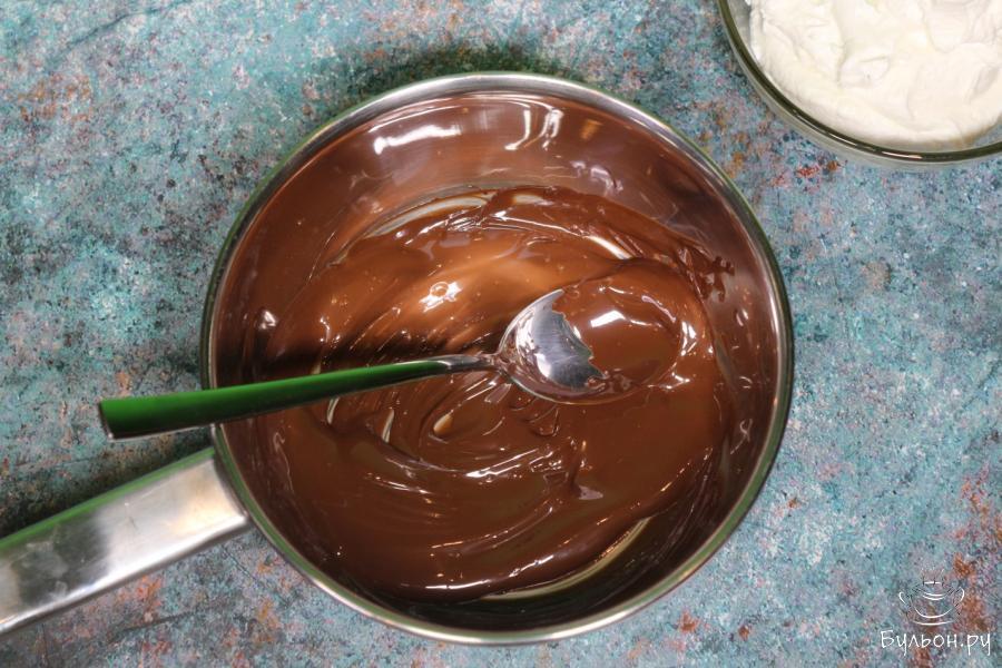 2. Теперь растопим 50 грамм темного шоколада на паровой бане и вольем его в творожную массу, все хорошо перемешаем.