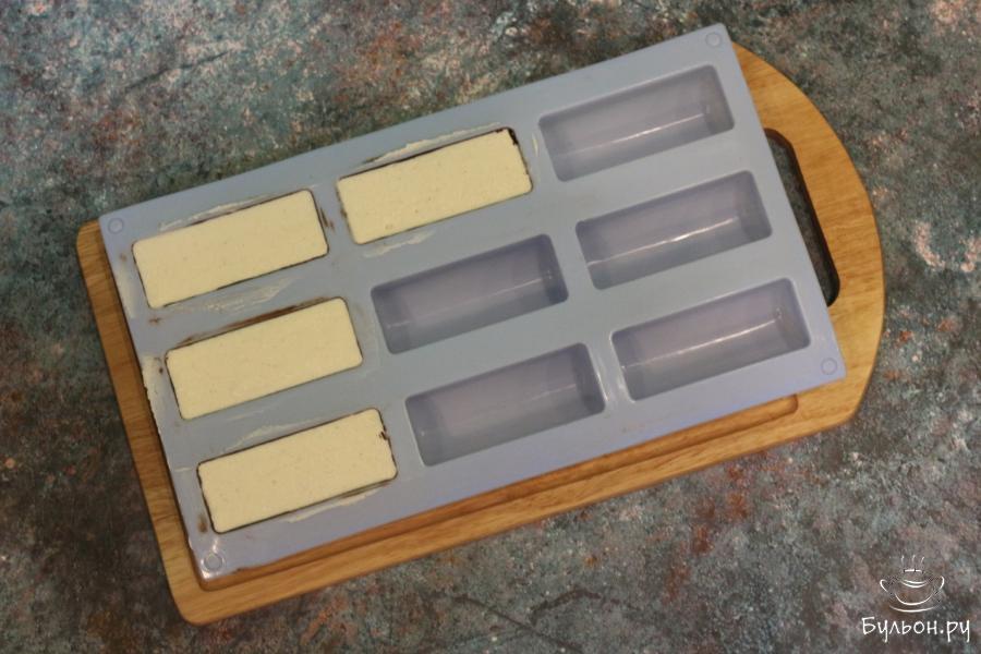 9. Снова заполняем сладким творогом формочки, до самого верха. Шпателем ровняем и убираем лишний творожок.