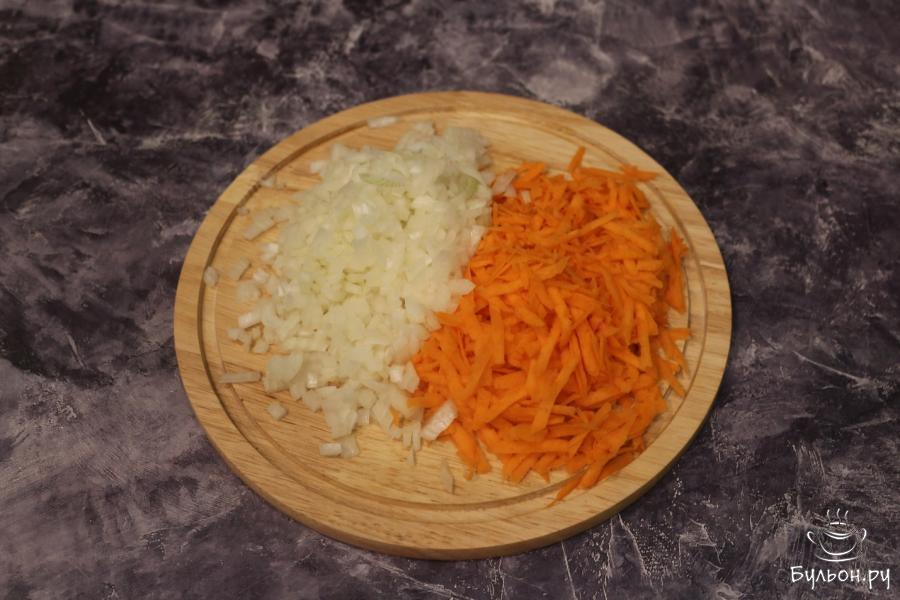 1. Гречку перебираем и промываем. Далее возьмем морковь и лук, очистим их и измельчим. Лук нарежем кубиками, а морковь натрем на крупной терке.