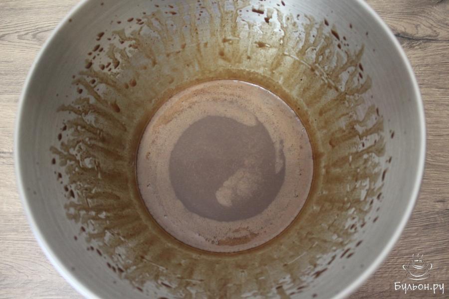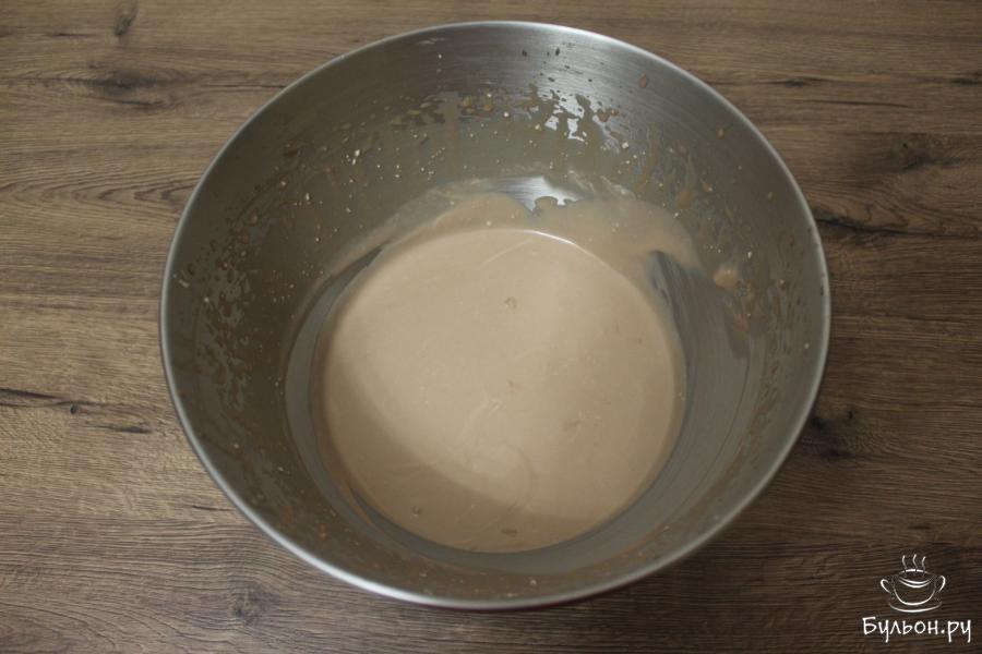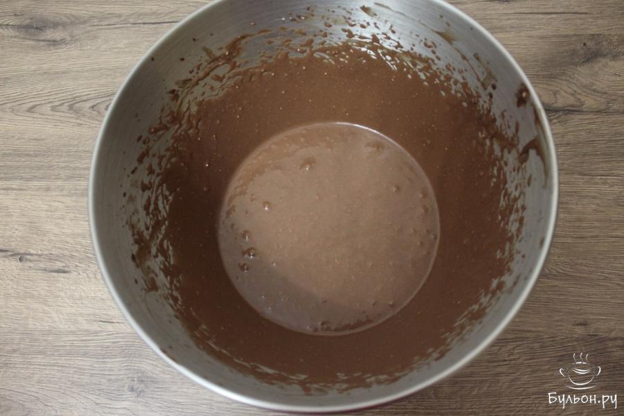 7. Перельем его в чашу для взбивания к остывшей шоколадно-молочной смеси и слегка взобьем эту смесь миксером.