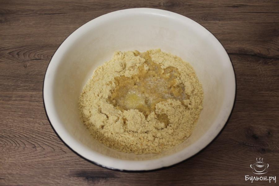 1. Печеньки поломаем руками на более мелкие кусочки и измельчим с помощью блендера или мясорубки. Вольем к крошке из печенья растопленное сливочное масло. Смешаем.