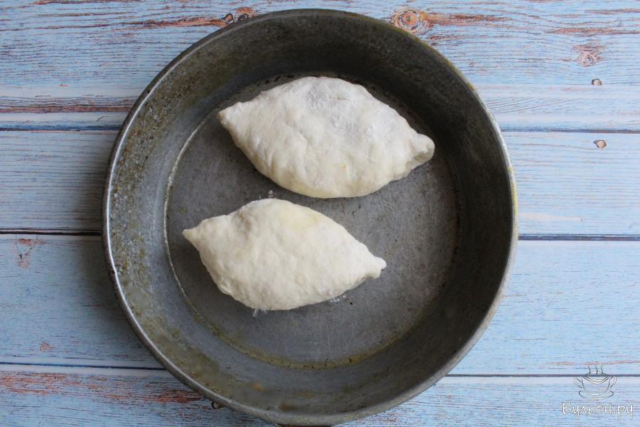 11. На сковороде разогреваем масло и выкладываем пирожки швами вниз. Обжариваем пирожки на среднем огне по 3-4 минуты с одной стороны.