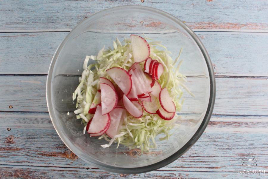 Если вам хочется хрустящий и вкусный овощной салат, то предлагаю попробовать капустный салат с редисом, зеленью и майонезом. Салат готовится быстро и легко. Салат порадует вас аппетитным ароматом и сбалансированным вкусом. Такой салат вместо майонеза можно заправить сметаной, йогуртом или оливковым маслом и не только получить новый вкус, но и сделать салат легче. Полезный и вкусный овощной салат всегда будет хорошим дополнением к обеду или ужину.