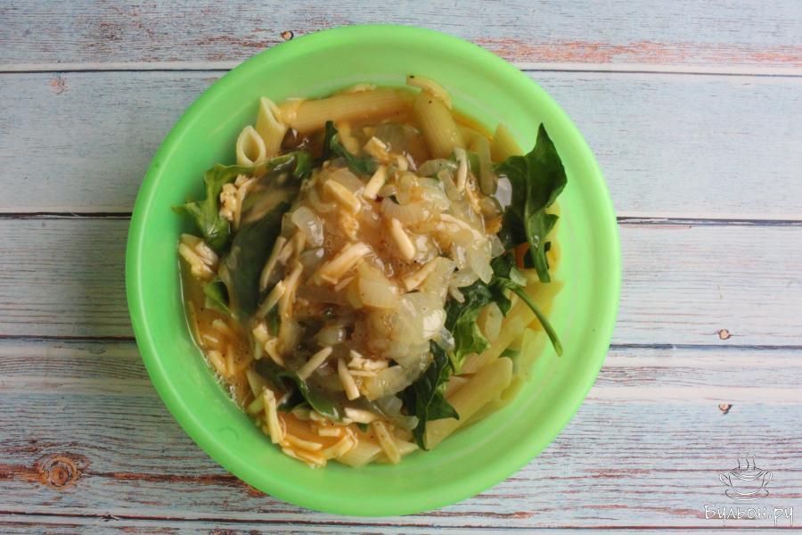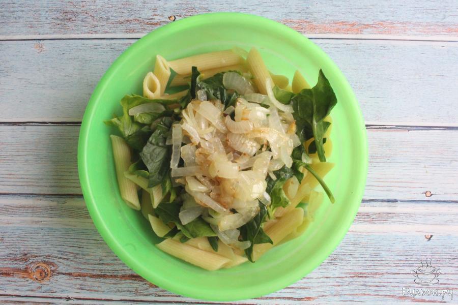 1. Для начала отварим макароны почти до готовности. На это обычно уходит 5-6 минут после закипания воды. Затем макароны откидываем на дуршлаг.
