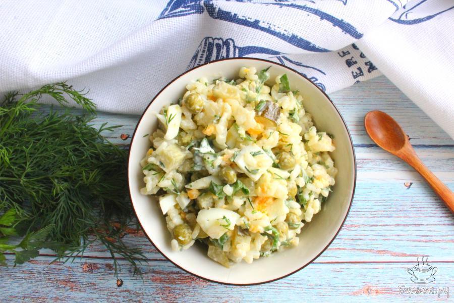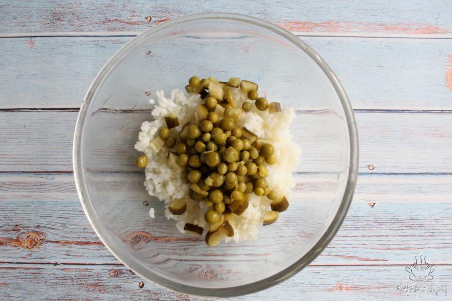 Если у вас осталось немного вареного риса и нужно пустить его в дело, то попробуйте приготовить рисовый салат с огурцами, горошком и яйцами в сметанной заправке. Салат получается сытный, насыщенный, душистый и очень вкусный. Порцией такого салата можно вполне заменить ужин. Готовится салат просто и достаточно быстро. Можно дополнить салат своей любимой зеленью, а соленые огурцы вполне можно заменить на маринованные.