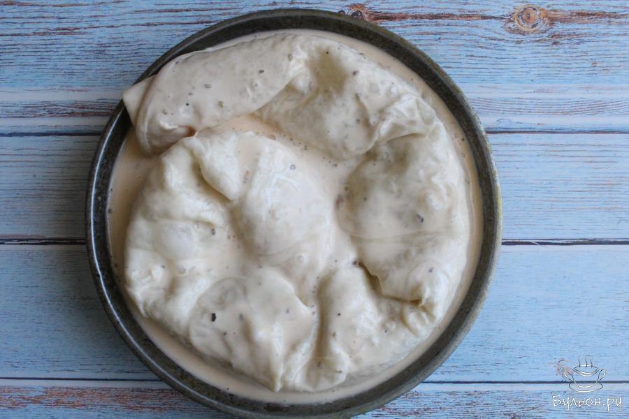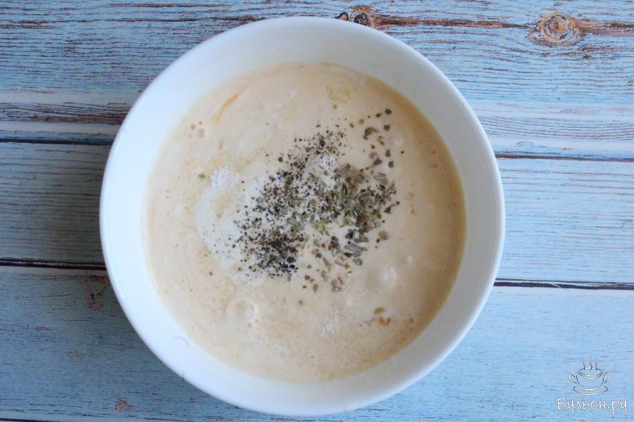 9. Добавляем в заливку черный перец и орегано. По желанию заливку солим. Можно добавить в заливку свои любимые пряности. Перемешиваем.