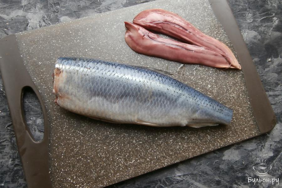 1. Выбирать нужно крупную и жирную селедку. Ее нужно разморозить, голову и хвостовую часть удалить, вынуть все ненужные внутренности. Молоки или икру, если любите, можно также засолить. Селедку хорошенько вымыть.