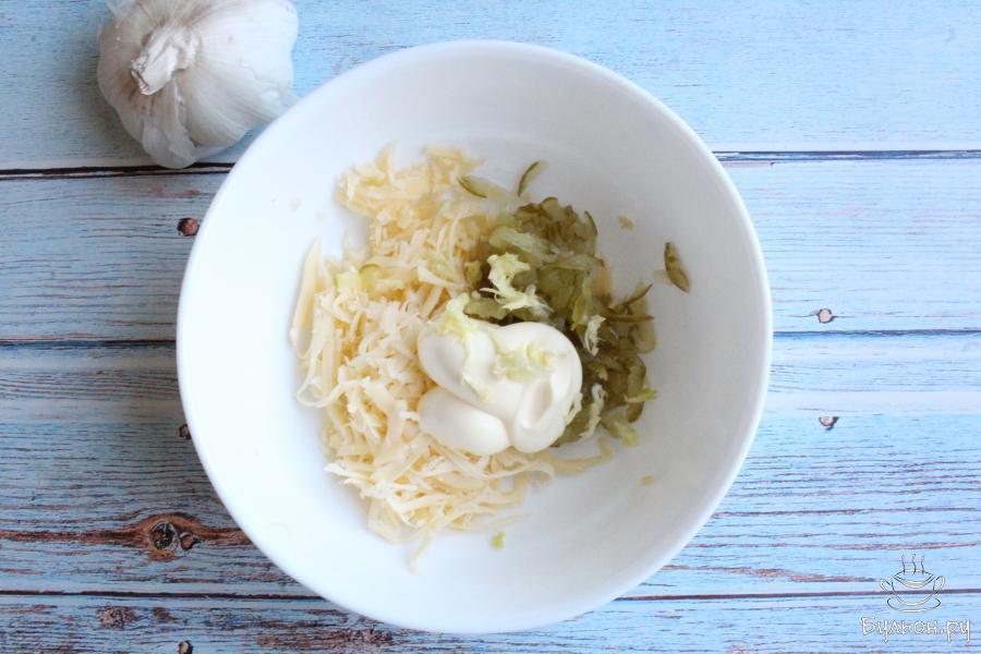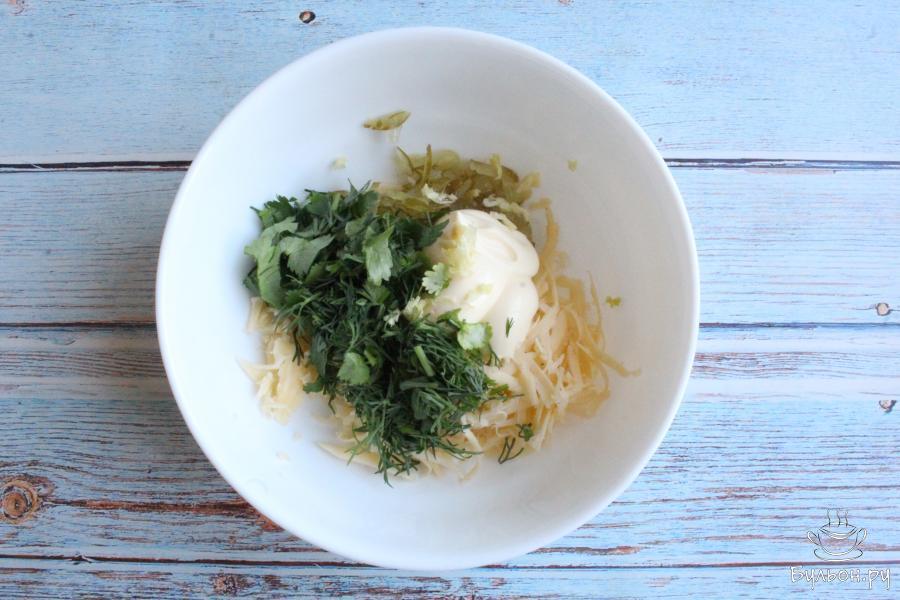 5. Зелень промоем, обсушим, измельчим. Добавим зелень в сырную массу. Перемешаем намазку. Если нужно, то можно намазку немного посолить.