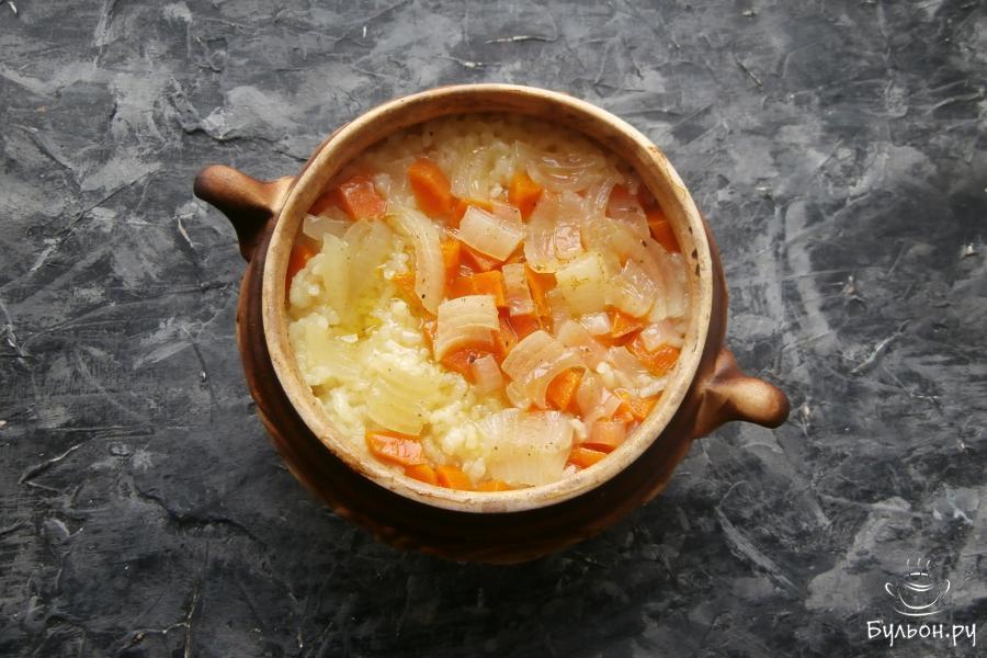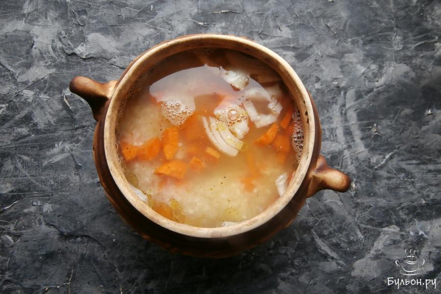 5. Влить 1 ст. л. растительного масла и залить все водой так, чтобы она покрывала все продукты выше на 2 см.