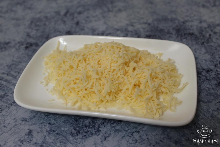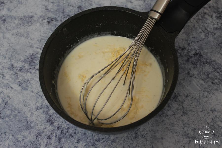 4. Следующим шагом, возьмем натертый сыр. Поскольку соус необходимо постоянно мешать, во избежание образования мучных комочков, сыр лучше натереть заранее, либо купить в магазине уже натертый.