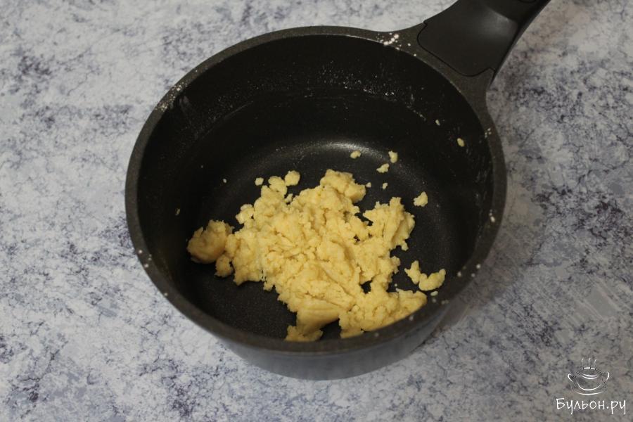 2. Теперь начнем готовить соус, за основу которого взят бешамель. В растопленном сливочном масле обжарим муку.