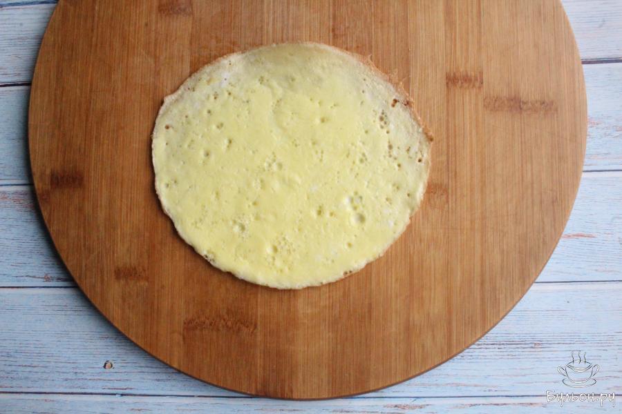 2. Жарим блинчики на разогретой сковороде с одной стороны под крышкой. Готовим блинчики по 2-3 минуты. Если сковорода проверенная и к ней ничего не прилипает, то можно не смазывать ее маслом. Количество блинчиков зависит от диаметра сковороды. На небольшой сковороде выйдет 3 блинчика.