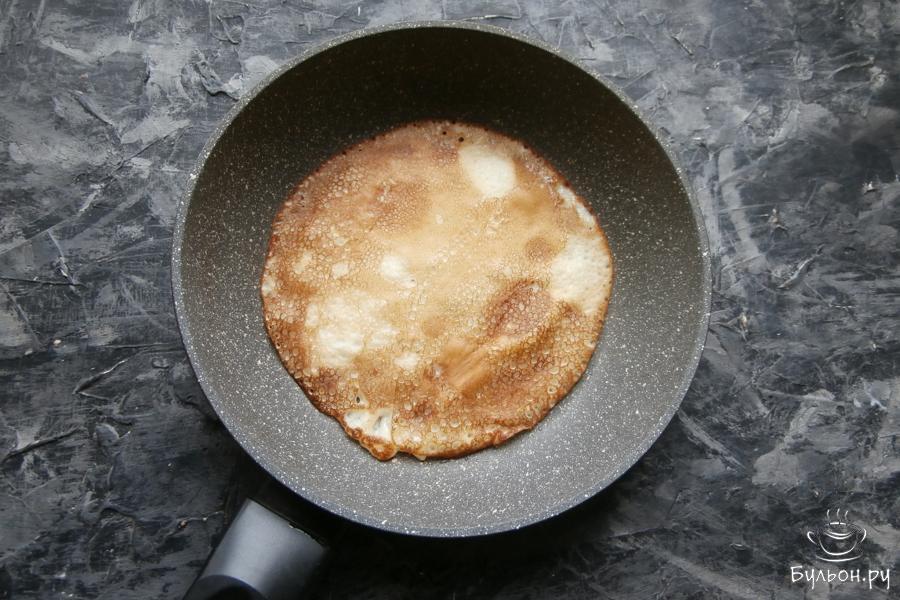 7. Жарить блинчики обычным способом, зарумянив обе стороны. Переворачивать блины нужно аккуратно, они очень нежные.