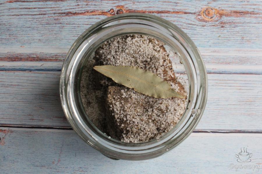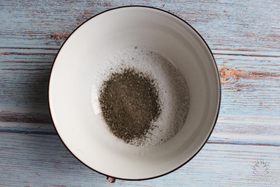 3. Соль смешиваем с перцем. Если вы хотите менее острое сало, перец можно сократить до двух чайных ложек.