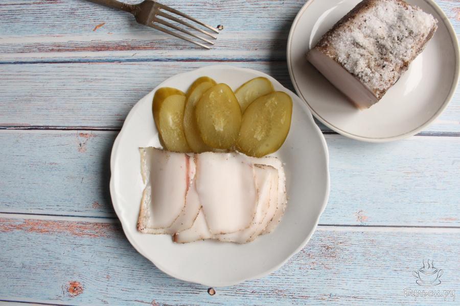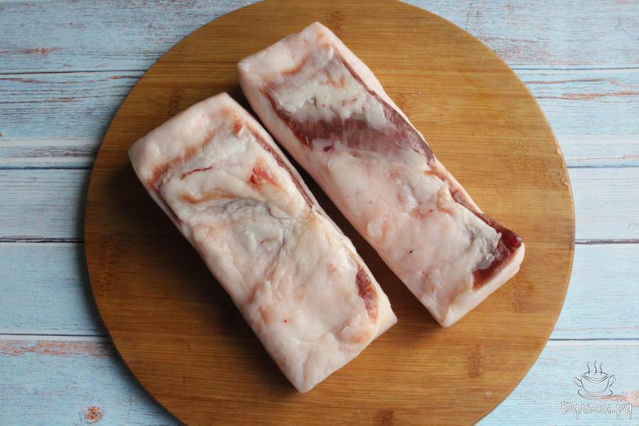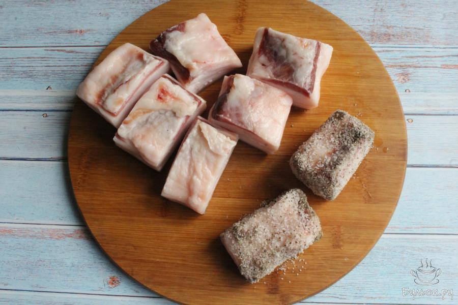 1. Сало нужно выбирать толщиной более пяти сантиметров и с мягкой шкуркой. Сало промоем, шкурку, если нужно, поскоблим ножом.