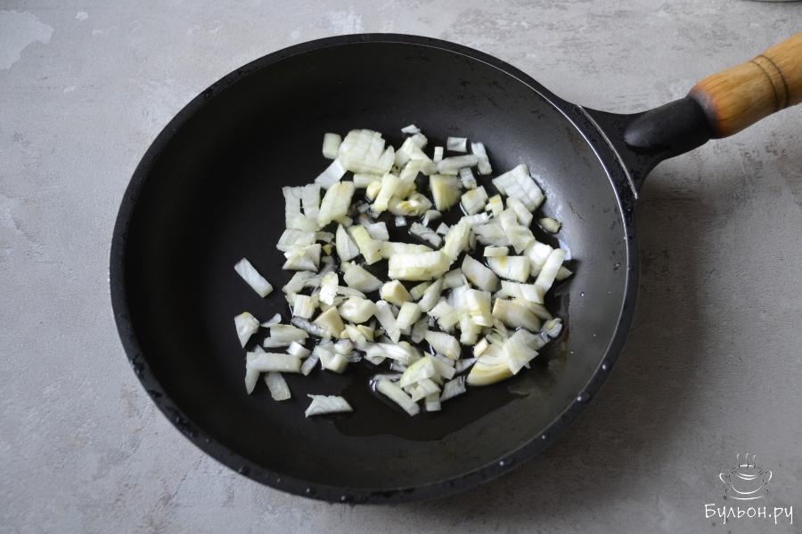 5. Пассеруйте лук на среднем огне до прозрачного цвета в течение 7-8 минут. Переложите лук в кипящий суп и варите до готовности картофеля.