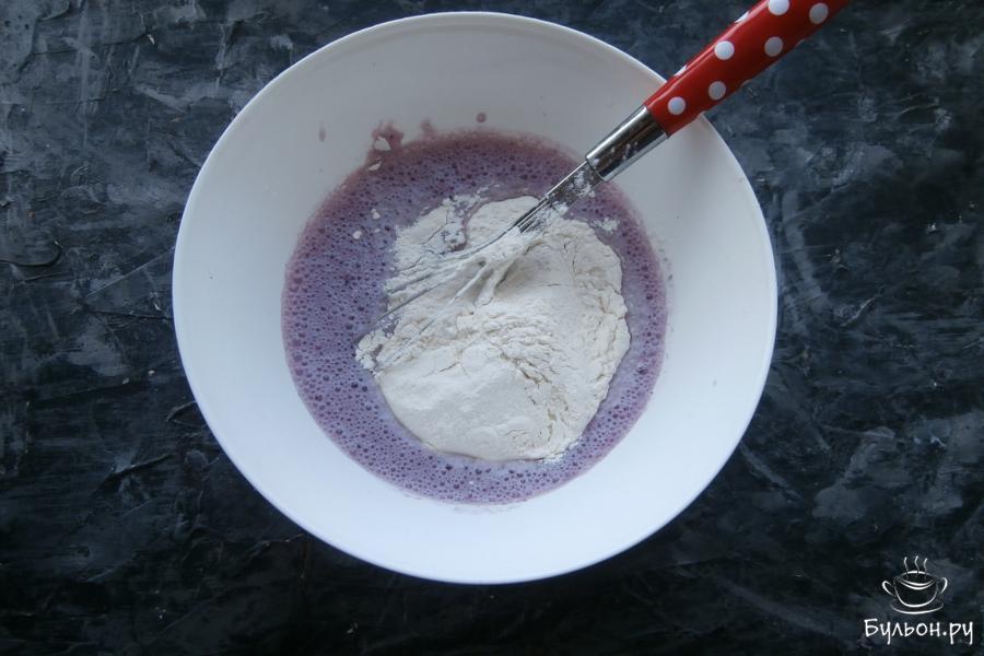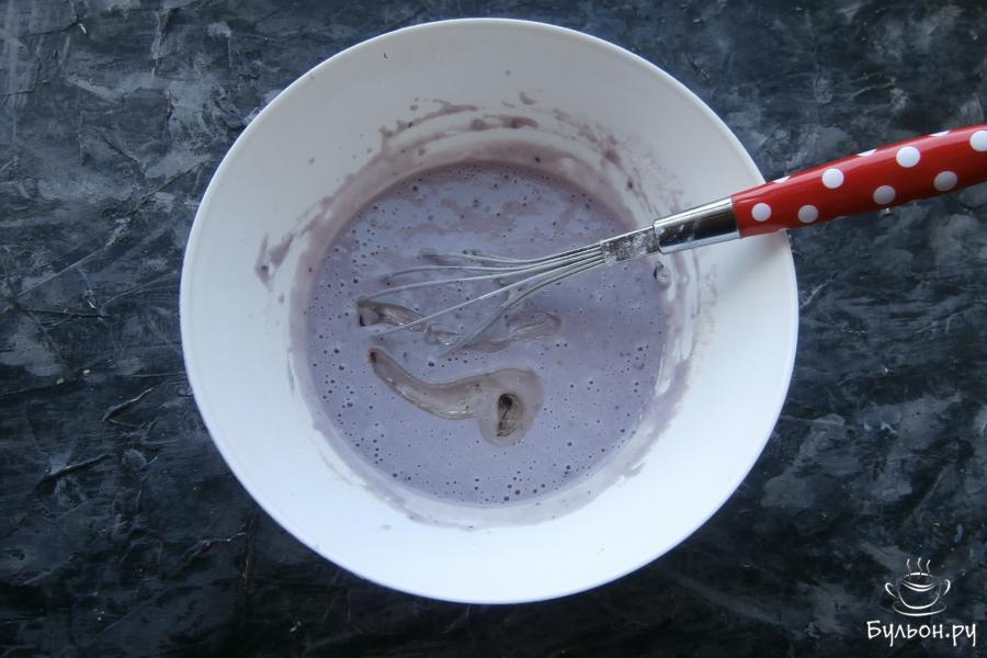 4. Тесто еще разок перемешать и оставить минут на десять в покое. У меня тесто фиолетовое, йогурт использовала с натуральными ягодами черной смородины.