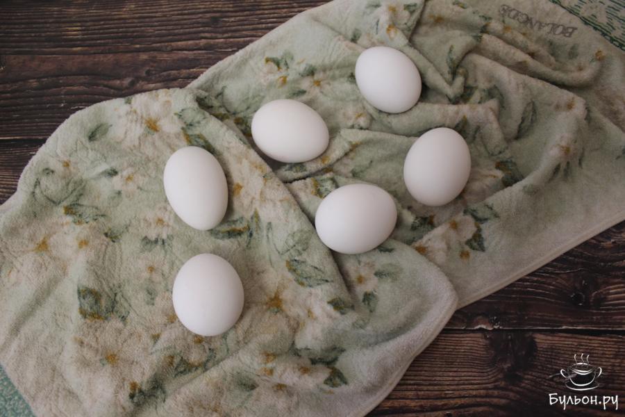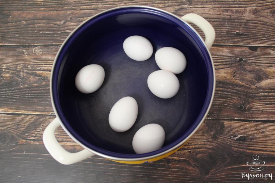 3. Купленные яйца вымоем и затем отварим вкрутую. На варку яиц после закипания воды должно уйти примерно 10 минут.