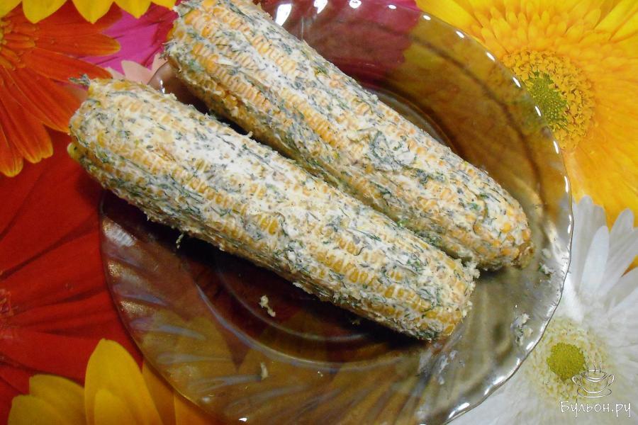 Свежая кукуруза в початках - это популярный овощ на летних прилавках магазинов. Но вариаций ее приготовления не очень много. Самый распространенный - это варка. Я же предлагаю запечь кукурузу в духовке. Початок свежей или замороженной кукурузы, запеченный со сливочным маслом в фольге получается даже вкуснее и сочнее, чем вареный. Кукуруза сохраняет в себе все соки и полезные вещества во время запекания. А также, сохраняет свою сладость. Для более начыщенного вкуса, початки натираются маринадом из смеси сливочного масла, соли, чеснока, зелени укропа и сушеных специй. Специи и зелень можно использовать свои любимые. Если для готовки используется замороженная кукуруза, размораживать ее не нужно, но время запекания нужно будет увеличить на 5-10 минут.