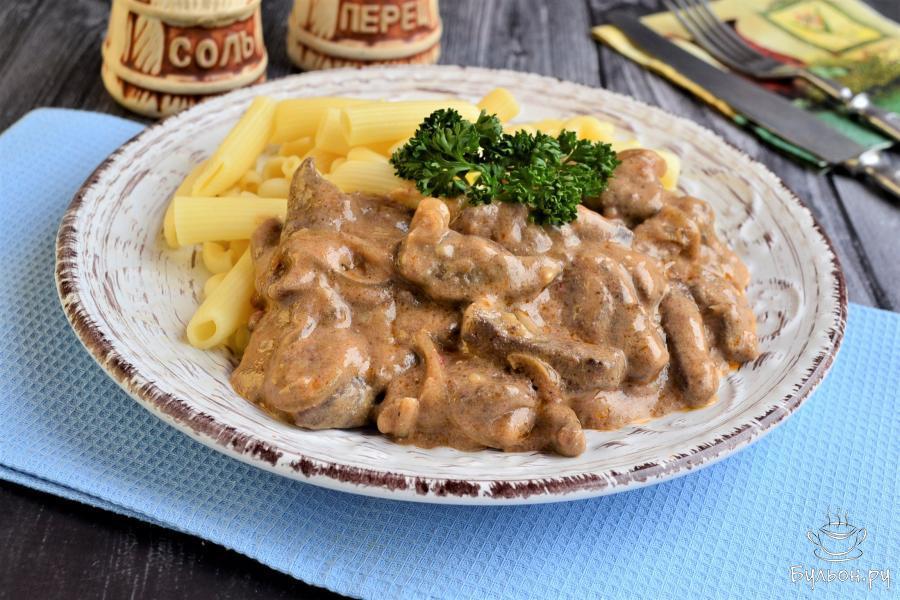 Бефстроганов - популярное русское блюдо, которое обычно готовят из говядины. Но, наши хозяйки сейчас по такому же рецепту могут приготовить и свинину, и курицу, и даже печень. Вот я и предлагаю вам попробовать очень вкусную свиную печенку по-строгановски. Блюдо получается нежным, его можно подать с любым гарниром. Свиную печень предварительно нужно вымочить в молоке или воде не менее 2-3 часов, чтобы в готовом виде она была мягче и исчезла свойственная этому продукту горечь.